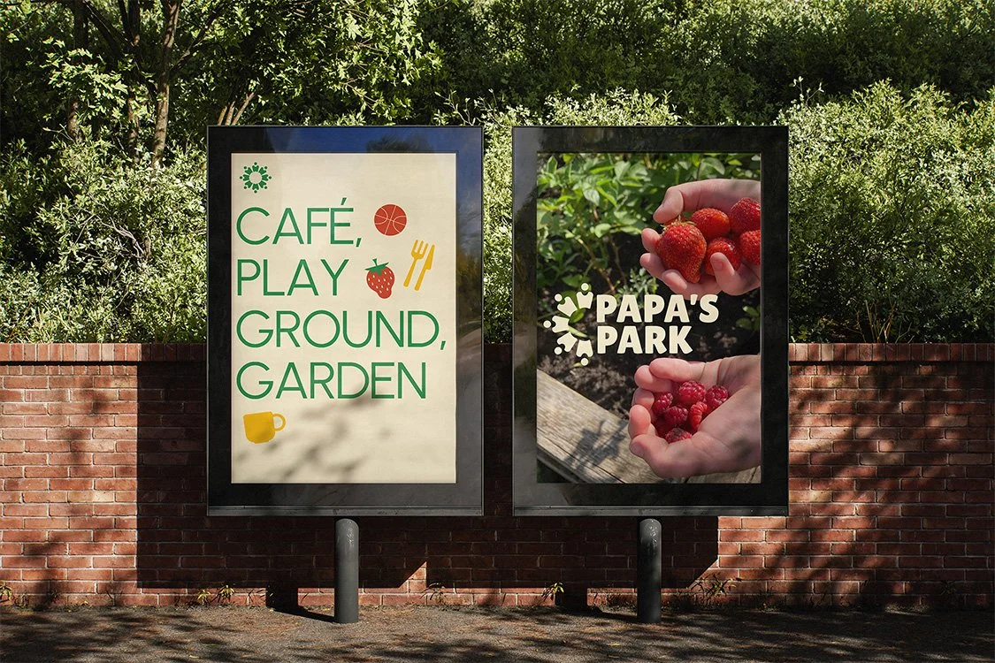 PAPA’S Park (The Pulross Area Play Association) is a volunteer-led , open access playground, cafe, and community hub nestled in the heart of Brixton, London. Established in the 1990s, it was created to rescue a derelict former council-run play area protecting it from redevelopment. Often referred to as the Urban Oasis, PAPA’S Park has become a safe haven for children and families in the area —fostering connection, inclusion, joy, and environmental sustainability. I strived to reflect these values as well as their story when rebranding PAPA’S Park. The final product consisted of a new logo, color scheme, and icons which represented the variety of services that PAPA’S Park provides.