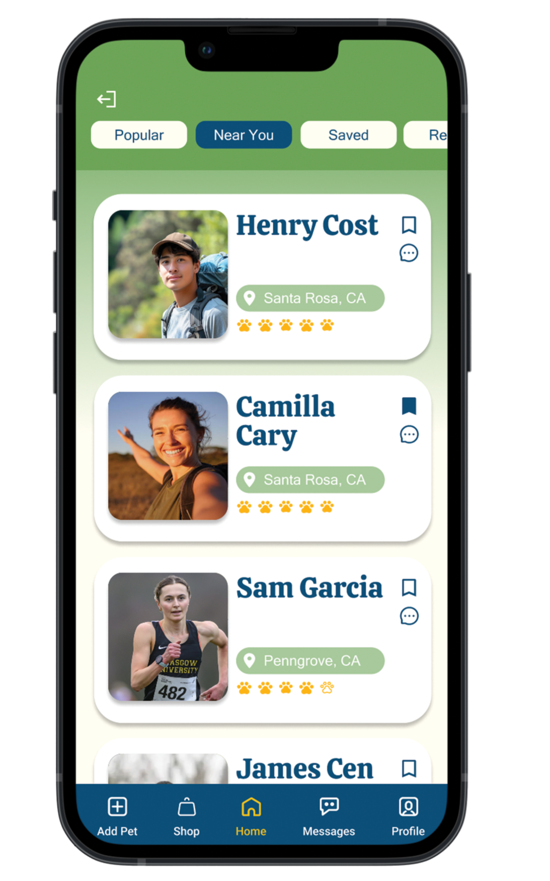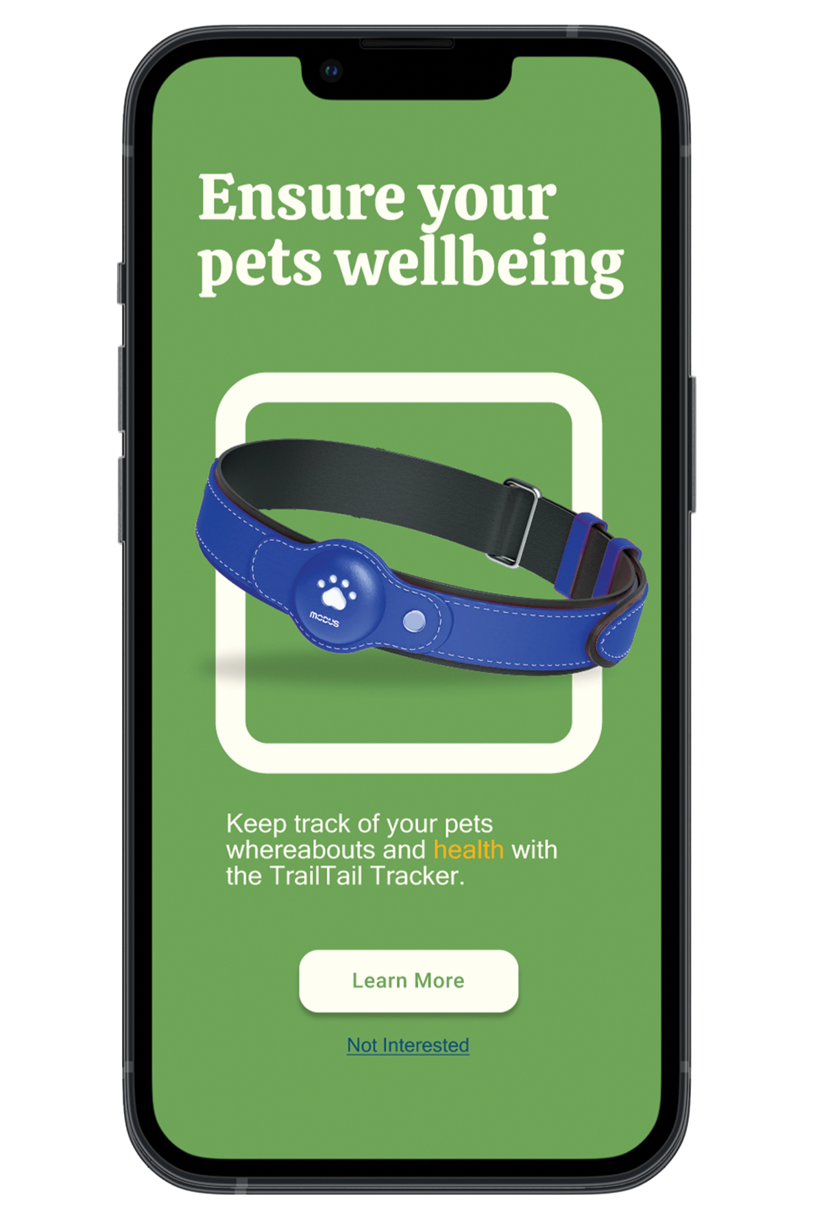 With a strong emphasis on legibility and intuitive navigation, TrailTail is easy to use for all ages, especially seniors. Its design celebrates nature, movement, and fun, reflecting the joy and vitality every dog deserves. Through clear visuals and an active, outdoor-focused tone, TrailTail promotes healthy routines, companionship, and the simple happiness of time spent outdoors with a dog.